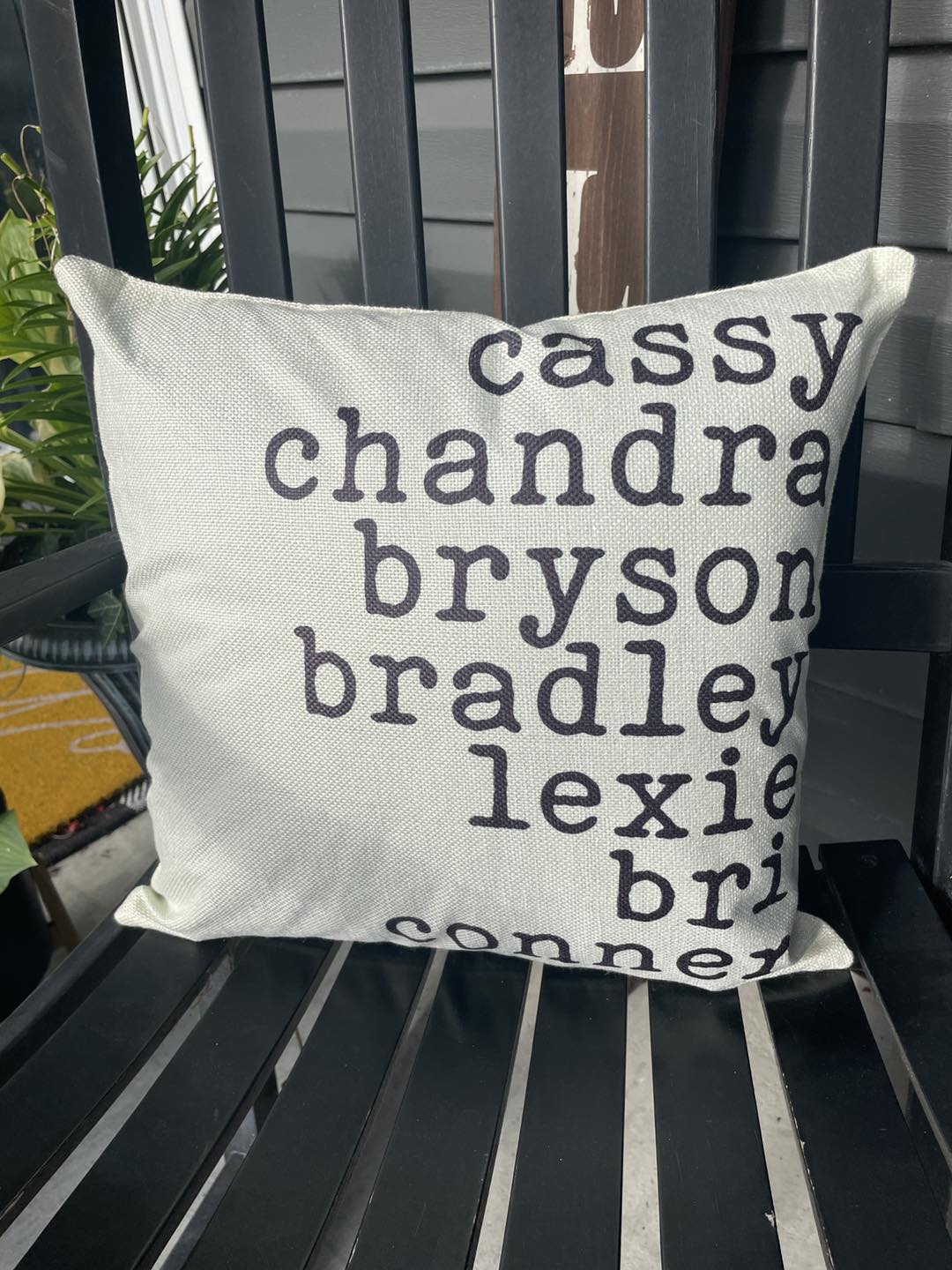 Please note: These pillows have a typeset font with typically starts will all lowercase letters (as shown in the photo). If you prefer a different style just let us know in the notes section at checkout or in the personalization box.