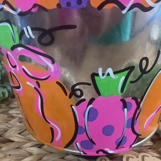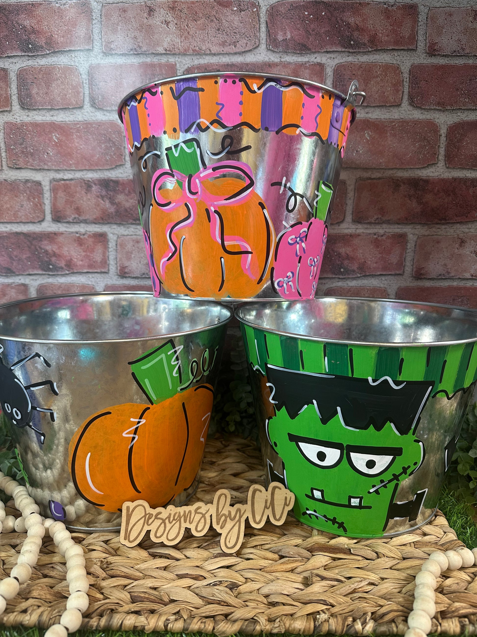 Unleash spooky fun with our Hand Painted Halloween Buckets! Fully customizable with your little goblin's name, these buckets are perfect for trick-or-treating or decorating. Hand painted with care, each bucket is one-of-a-kind. Get yours today and add a personal touch to your Halloween celebrations! (Boo-tiful!)