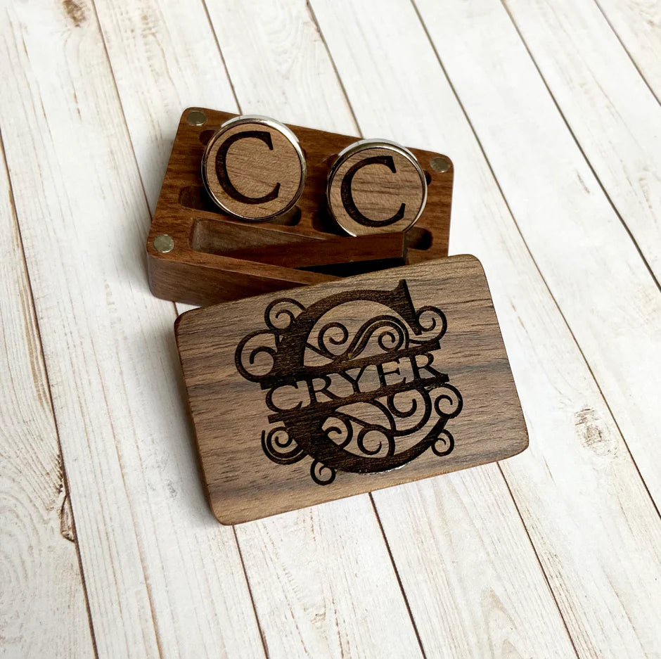 These personalized cuff links and tie clip are crafted with high-quality materials and engraved in an elegant box for a unique touch. The sleek and modern design is perfect for everyday fashion or for a special occasion. Personalize your look with a professional, timeless style.